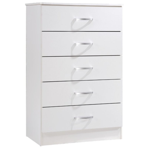 Hodedah Five Drawer Contemporary Wooden Chest in White Finish