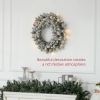 HOMCOM 24 Inch Pre-Lit Christmas Wreath for Front Door with LED Lights, Pine Cones and Berries, Flocked Winter Wreath for Windows, Wall Decoration, Green