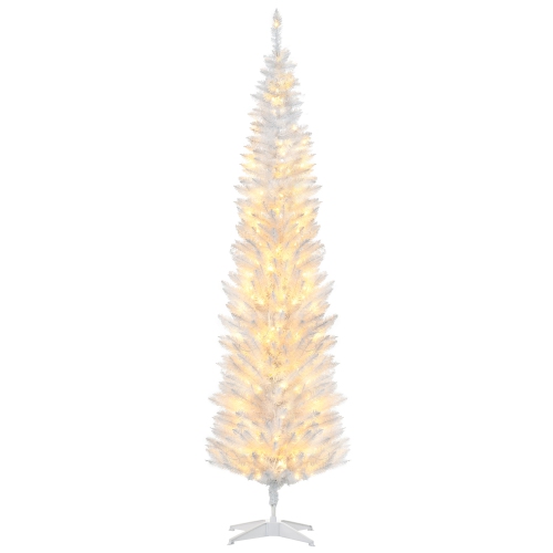 HOMCOM 7 ft Pre-Lit Noble Fir Slim Artificial Christmas Tree with 499 Tips and 200 Warm White LED Lights, White