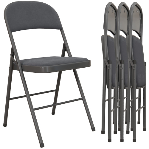 HOMCOM Metal Folding Chairs 4 Pack Velvet Padded Foldable Chairs Indoor with Cushion for Office Reception Waiting Room Party Dark Grey