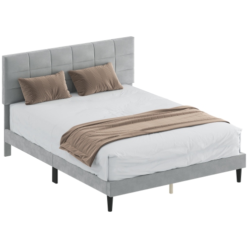 HOMCOM Queen Bed Frame with Headboard, 1100 lbs Upholstered Platform Bed Frame with Under Bed Storage, Wooden Slat Support, No Box Spring Needed, Easy Assembly, Grey