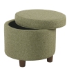 HomePop Round Transitional Wood and Fabric Storage Ottoman in Green Tweed