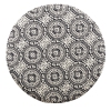 This classic round ottoman offered in a global inspired suzani design creates a striking impact. The modern medallion pattern in a textured flax blend of black and cream is complemented by wood legs in a rustic brown finish. This storage ottoman will add functional style to any space. Use it to store extra pillows or blankets in a bedroom, hide toys or controllers in the family room, or conceal accessories in the entryway. Pair two ottomans together and double the impa...
