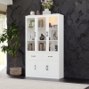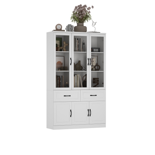 The bookcase combines modern style with practical functionality, making it a perfect fit for any home or office. Its tall, freestanding design and adjustable shelves provide flexible storage for books and décor, while the built-in drawers offer additional space for organizing smaller items.