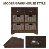 Homy Casa Rustic Storage Cabinet with Two Drawers and Four Classic Rattan Basket for Dining Room Living Room, Espresso