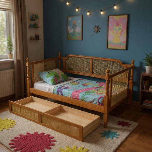 Homy Casa Traditional Rattan Twin Size Daybed Frame with 2 Drawers