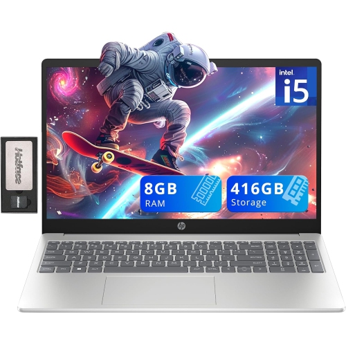 HP 15.6" FHD IPS Laptop, Intel i5-1235U, 416GB Storage(256GB SSD + 160GB Docking Station Set), 8GB RAM, Intel Iris Xe Graphics, Numeric Keypad, Wi-Fi 6, Windows 11, Silver. Great for home and office use.