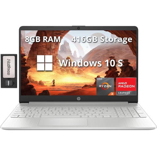 HP 15.6" FHD Laptop, AMD Ryzen 3-3250U Processor, 416GB Storage, 8GB RAM, AMD Radeon Graphics, Numeric Keypad, 720p HD Webcam, WiFi, Windows 10S, Silver