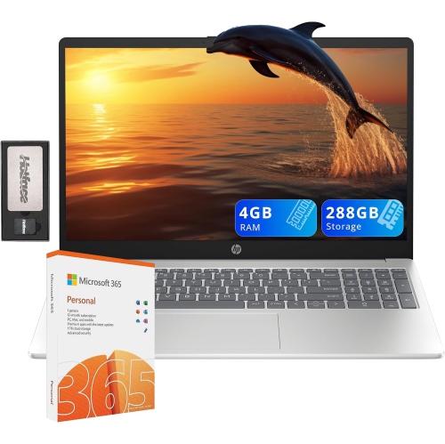 HP 15.6" HD Laptop, Intel Pentium N200, 4GB DDR4 RAM, 288GB Storage (128GB SSD+160GB Docking Station Set), Intel UHD Graphics, Full Size Keyboard,1 Year Office 365, Win 11, Silver