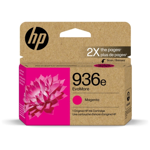 The HP 936E (4S6V4LN) EvoMore Magenta InkJet Cartridge produces sharp, vibrant cyan prints with an average yield of 1,650 pages. It works smoothly with compatible HP printers, offering reliable performance and consistent color. The EvoMore technology supports eco-friendly printing while maintaining professional-quality results.