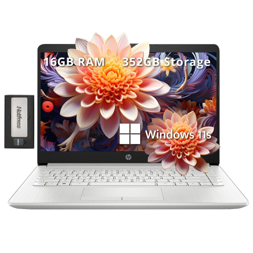 HP Premium Stream 14" HD BrightView Laptop, Intel Celeron N4120, 352GB Storage(64GB eMMC+288GB Docking Station Set), 16GB RAM, Intel UHD Graphics, 1 Year Office 365, Win11s, Silver