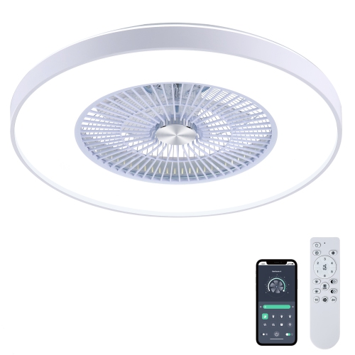 HUMHOLD 24" Bladeless Ceiling Fan with Lights and Remote/APP Control, Low Profile with 3-Dimmable Lights, Enclosed Flush Mount for Kid's Bedroom/Living Room - White