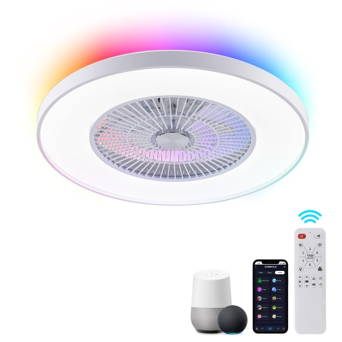 HUMHOLD 24" Bladeless Ceiling Fan with Lights and Remote/APP/Voice Control, Low Profile with RGB Lights, Enclosed Flush Mount for Kid's Bedroom/Living Room - White