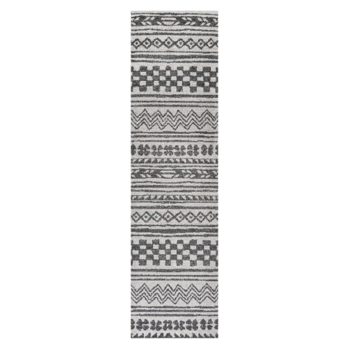 Inspired by Moroccan and tribal designs, our modern stripe pattern is ideal for a living room, bedroom or entry. Tribal-inspired geometric symbols are woven in ivory and gray; the mingled threads recall vintage handwoven rugs. Add contemporary Bohemian style to your home with this easy-care rug.