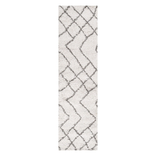 Inspired by vintage Beni Ourain Moroccan rugs, our soft and fluffy shag yarns make it easy to go barefoot. The classic Moroccan pattern has deep gray diamonds on a field of ivory.