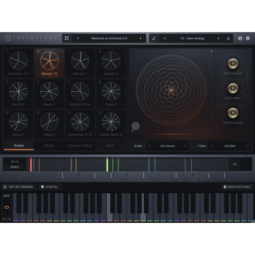 Step through a wormhole to music light-years ahead with Infinitone 2, the revolutionary dynamic microtuning plugin that unlocks the "notes-in-between-the-notes." Effortlessly explore limitless melodic and harmonic possibilities with curated presets, empowering you to break free from the “12-tone prison.” Whether you're a beginner or an expert, Infinitone 2 makes creating groundbreaking music easy, intuitive, and inspiring.