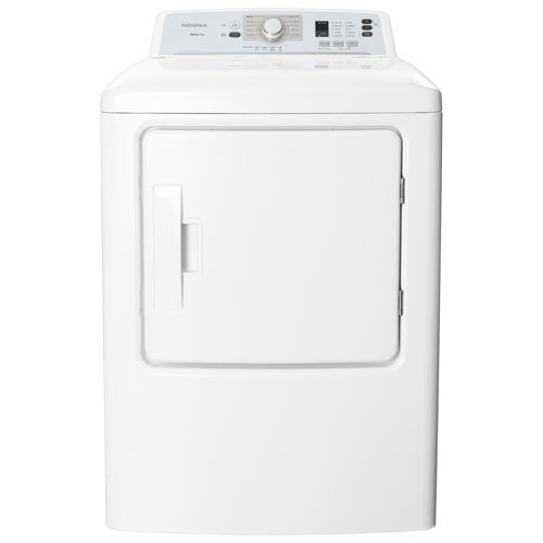 Take the hassle out of laundry duty with this 6.7 cu. ft. electric dryer from Insignia. It features a built-in moisture sensor that shuts the dryer off when your laundry is fully dry, plus 10 distinct drying cycles, including Quick Dry, Heavy Duty, and Casual Delicates. The reversible door and front load design give you more options when placing the dryer in tight spots.Insignia 6.7 Cu. Ft Electric Dryer (NS-FDRE67WH8A-C) - White - Open Box - Perfect Condition