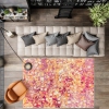 Dabs of colorful paint on canvas inspired this gorgeous rug -- an artistic masterpiece -- for your floors! Like a bed of spring flowers, the orange, gold, pink, beige, cream, and red polypropylene yarns come together to create a fresh, feminine look that will liven any decor.