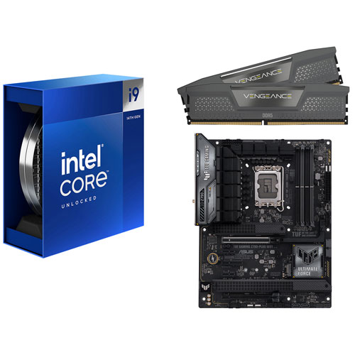 Power up your build with the Intel Core i9-14900K processor, ASUS TUF Gaming Z790-Plus motherboard, and Corsair Vengeance 32GB desktop memory bundle.