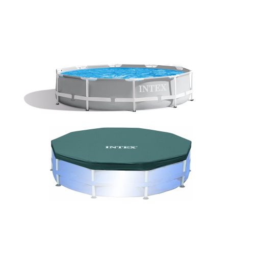 Intex 10'x30" Round Above Ground Swimming Pool & 10' Round Swimming Pool Cover