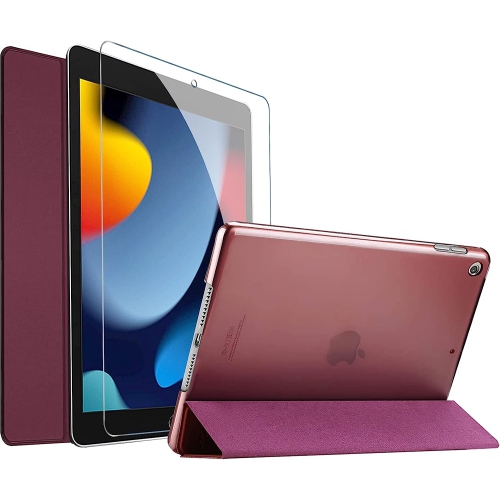 iPad 10.2 Case 2021 9th Gen/ 2020 8th Gen/ 2019 7th Gen Case with Tempered Glass Screen Protector, Slim Stand Hard Shell Protective Smart Cover for 10.2” iPad 9th/8th/7th Generatio
