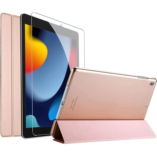 iPad 10.2 Case 2021 9th Gen/ 2020 8th Gen/ 2019 7th Gen Case with Tempered Glass Screen Protector, Slim Stand Hard Shell Protective Smart Cover for 10.2” iPad 9th/8th/7th Generatio