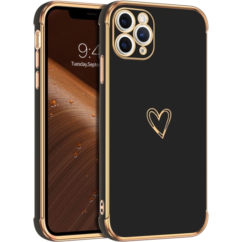 iPhone 11 Pro Max Case Cute Heart Pattern Soft TPU Plating Cover for Women Girls with Camera Protection & 4