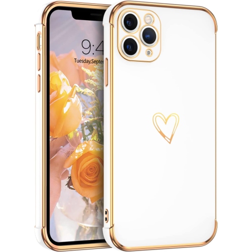 iPhone 11 Pro Max Case Cute Heart Pattern Soft TPU Plating Cover for Women Girls with Camera Protection & 4