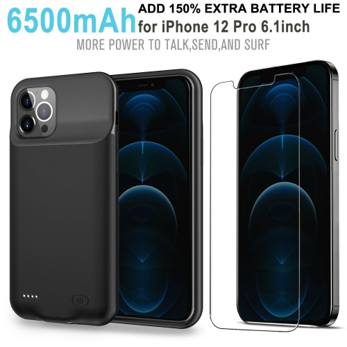 iPhone 12 Pro / 12 High Capacity [6500mAh] Battery Case & 2.5D HD Tempered Glass