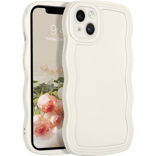 iPhone 14 Case Cute Wave Frame Design Slim Soft TPU Shockproof Protective Phone Case iPhone 14 6.1 Inch, Stone