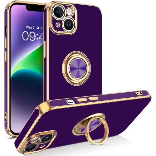 iPhone 14 Plus Case, iPhone 14 Plus Phone Case Ring Holder Edge Plating Kickstand Soft Silicone Bumper Women