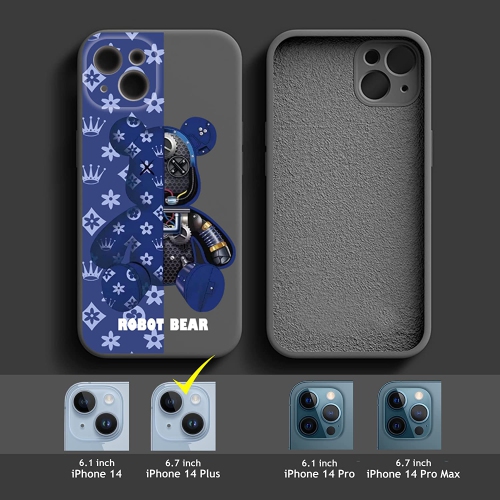 iPhone 14 Plus Fashionable Designer Bear Silicone Case with Full Body Protection in Purple Color