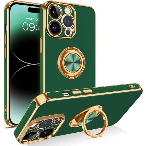 iPhone 14 Pro Case, iPhone 14 Pro Phone Case Ring Holder Edge Plating Kickstand Soft Silicone Bumper Women