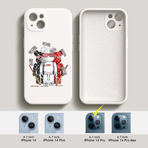 iPhone 14 Pro Fashionable Designer Bear Silicone Case with Full Body Protection in White Color