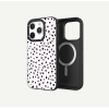The one fashion code every style-conscious individual should live by is neutral! The iPhone 15 Pro Case With MagSafe - White Polka Dots Design features black polka dot patterns printed on a white base, making it a favorite among minimalists