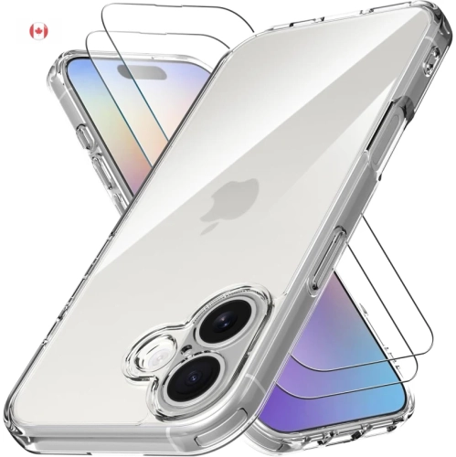Protect your iPhone 17 5G with a clear anti-yellowing case and 2 pack 9H tempered glass. Military grade shockproof, fingerprint unlock supported.
