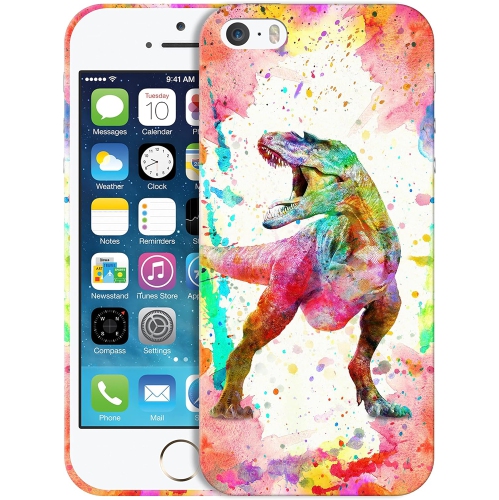 iPhone 5 / iPhone 5s / iPhone SE Case - Watercolor Dinosaur design Printed Slim profile designer Hardshell snap on case for iPHone 5 / 5s / SE 1st Gen only. [4"]iPhone 5 / 5s / SE Cover - This Printed Plastic designer case using high absorption ink technology for long lasting color and print. The print wont fade or yellow like most cases do and they last longer.iPhone 5 / 5s / SE 1st Generation Case for Girls - Snap on case that does not add bulk to your phone. Maintains
