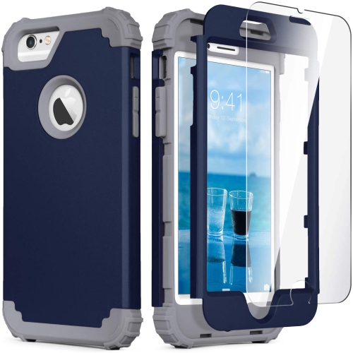 iPhone 6S Case, iPhone 6 Case with Tempered Glass Screen Protector, 3 in 1 Heavy Duty Rugged Shockproof Hybrid