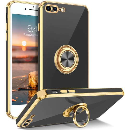 iPhone 8 Plus Case, iPhone 7 Plus Case Ring Holder Edge Plating Rotation Kickstand Soft Silicone TPU Bumper
