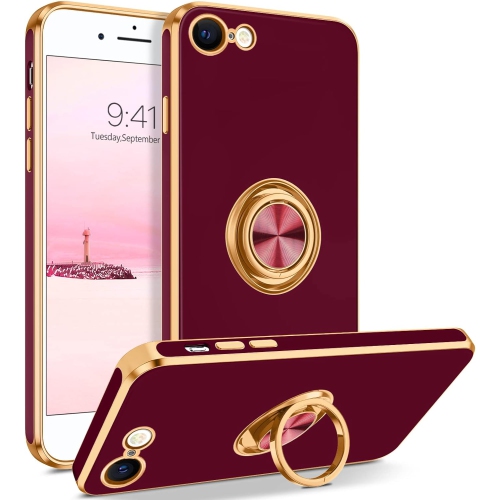 iPhone SE Case 2022/2020, iPhone 8 Case, iPhone 7 Case Ring Holder Edge Plating Soft Silicone TPU Bumper