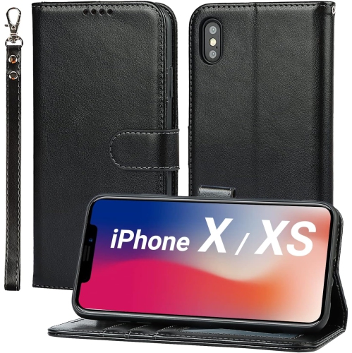 [Compatibility] -iPhone X/XS Wallet casepatible with iPhone X/XS ONLY,Not fit other mobile phones.[Material]Made of Premium Leather feels soft.Maximum protection for your phone.[Wallet Feature]This wallet case features 3 card holders,a side pocket for money or additional cards.The effective and stylish magnetic lock design secures your money and cards.The series wallet case can switched to a horizontal position and act as a firm stand.Wrist strap makes it easy to be c