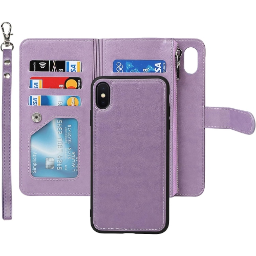 iPhone X/XS Wallet Case with Card Holder, 2 in 1 PU Leather Case with Magnetic Clasp Zipper Pocket