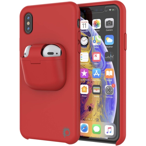 iPhone Xs Airpods Case Holder (CenterPods Series) | Slim & Durable 2 in 1 Cover Designed for iPhone Xs (5.8") | Protects Your Phone & Stores Your AirPods Gen. 1 & 2 [Red] Cell Phone Batteries