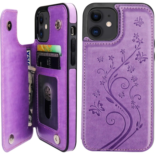 iPhone12/12 Pro Case Wallet with Card Holder,Embossed Butterfly Pattern PU Leather Double Magnetic Buttons Flip