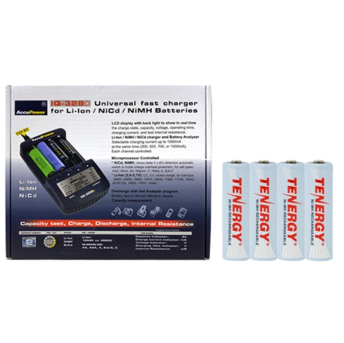 IQ-328 AA / AAA LCD Charger & 4 AA Tenergy NiMH Rechargeable Batteries (2500 mAh).