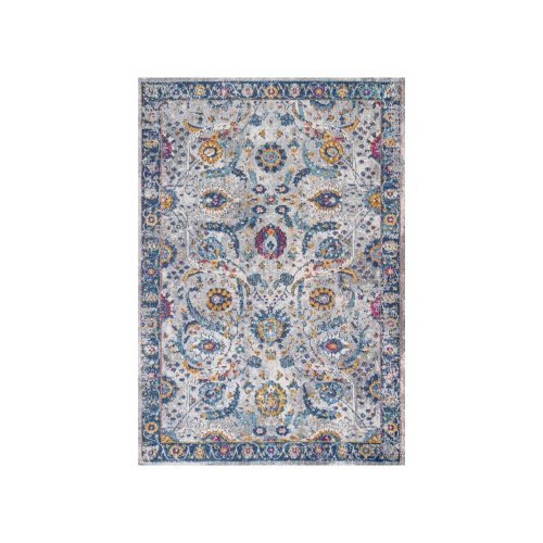 Layer on the cottage style with this colorful rug's traditional Persian design. The family-friendly pattern mixes rich jewel tones with golden yellow, on a distressed gray background for a vintage vibe. It's the perfect start to a rich color scheme in a bedroom, living room, entry, or dining area.