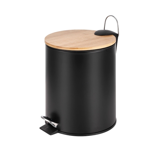 Jessar - Pedal Bin with Bamboo Lid, 5 Liter Capacity, Black