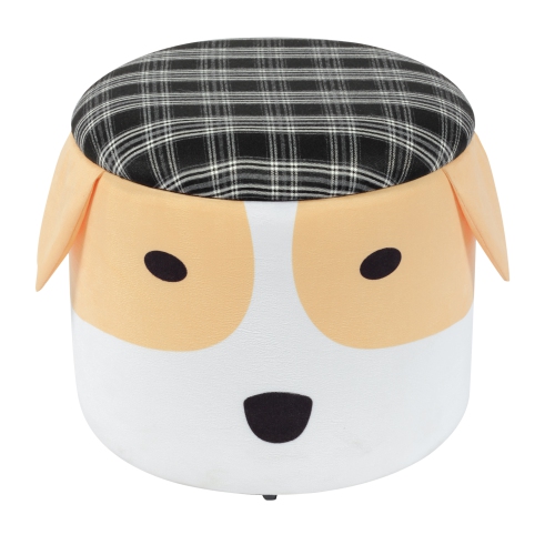 Jessar - Round Ottoman / Footstool with Storage For Children, From The Diego Collection, Dog Pattern