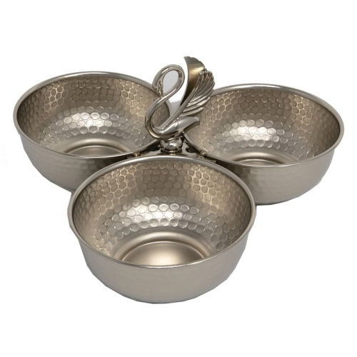 Jiallo 8.5x8x4.5" Swan Home Decor Modern Metal Triple Bowl in Silver
