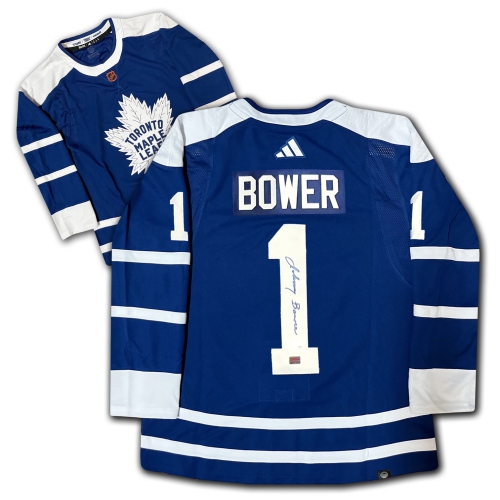 Commemorate the legendary Johnny Bower with this signed Toronto Maple Leafs Reverse Retro jersey. Combining the iconic retro design with the autograph of one of hockey's most beloved goaltenders, this piece is a true collector's item. Perfect for displaying in your fan cave or as part of a memorabilia collection, it serves as a timeless tribute to Bower's remarkable career and lasting legacy with the Maple Leafs. Comes with a certificate of authenticity and matching hologram.